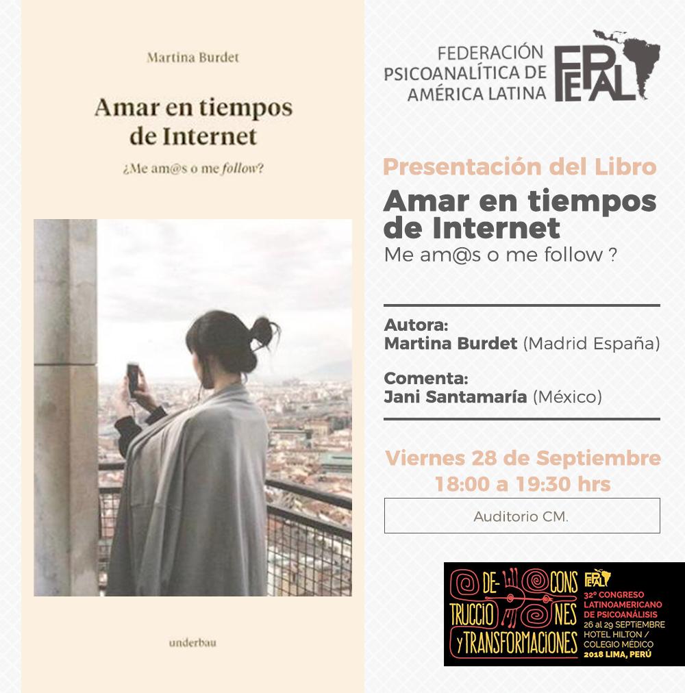 Con motivo del 32 Congreso Latinoamericano de Psicoanálisis Martina Burdet participó el día 27 en la conferencia «Construcciones. El afecto en busca de representacion en Davie» y el día 28 de septiembre presentando su libro «Amar en tiempos de Internet«.